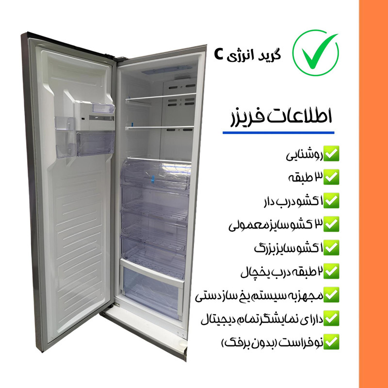 حفظ مواد غذایی تازه در طول زمان برای انسان ها الزامی بوده که امروزه یخچال و فریزر ها این امر را برای ما انجام می دهند. یخچال فریزر دو قلو 40 فوت استیلون مدل دو رین دوریکی از بهترین محصولاتی است که می توانید در بازار از آن استفاده کنید. این محصول مقرون به صرفه بهترین انتخاب برای خانواده های پر جمعیت است. چون فضای ذخیره گسترده و دیگر امکاناتی که در ادامه به آن اشاره خواهیم کرد این محصول را متفاوت از بقیه محصولات جلوه می دهد. در قسمت یخچال این محصول که به طول 64.5، به عمق 60 و ارتفاع 187 سانتی متر است، یک قفسه قابل تنظیم برای گذاشتن انواع و اقسام نوشیدنی در نظر گرفته شده است. 4 طبقه قابل تنظیم نیز در یخچال به همراه 1 کشو و 5 طبقه در درب یخچال شما را از این فضای بزرگ بی نیاز می کند. این محصول دارای درب دوگانه (هوم بار) نیز می باشد. قسمت فریزر این محصول نیز امکان ذخیره سازی گسترده را برایتان فراهم می کند. ابعاد قسمت فریزر به طول 64.5، به عمق 60 و ارتفاع 187 سانتی متر است. انجماد سریع یکی از ویژگی های اختصاصی فریزر است که در برخی مواقع این ویژگی بهترین گزینه برای خرید محصول محسوب می شود. به غیر از کشو در فریزر، 3 طبقه جادار نیز شما را از گذاشتن مواد غذایی بی نیاز می کند. این فریزر 5 کشو نیز دارد که از این کشو ها یکی درب دار بوده و یکی سایز بزرگ است که 3 کشوی دیگر سایز معمولی فریزر محسوب می شود. از امکانات اختصاصی دیگر فریزر یخ ساز دستی است که در درب فریزر قرار گرفته است. همچنین 2 طبقه کوچک نیز در دکنار بخش یخ ساز این فریزر برای گذاشتن محصولات کوچک نیز وجود دارد. به صورت کلی از امکانات اختصاصی یخچال و فریزر دو قلو 40 فوت استیلون مدل دورین دور را می توان به عملکرد سریع سرد کردن در قسمت یخچال، انجماد سریع مواد عذایی در بخش فریزر، مصرف بهینه انرژی، مجهز به فن گردش هوا و گردش هوای چندگانه، حفظ تازگی مواد غذایی، کم صدا بودن، موتور قدرتمند، سیستم هوشمند عیب یابی خودکار، قفل کودک، اخطار باز ماندن درب و مهم تر از همه بدون برفک بودن اشاره کرد که متمایز بودن این محصول با دیگر محصولات را حس خواهید کرد. با این همه امکانات اختصاصی پیشنهاد می شود که از این محصول جذاب نهایت بهره را ببرید.